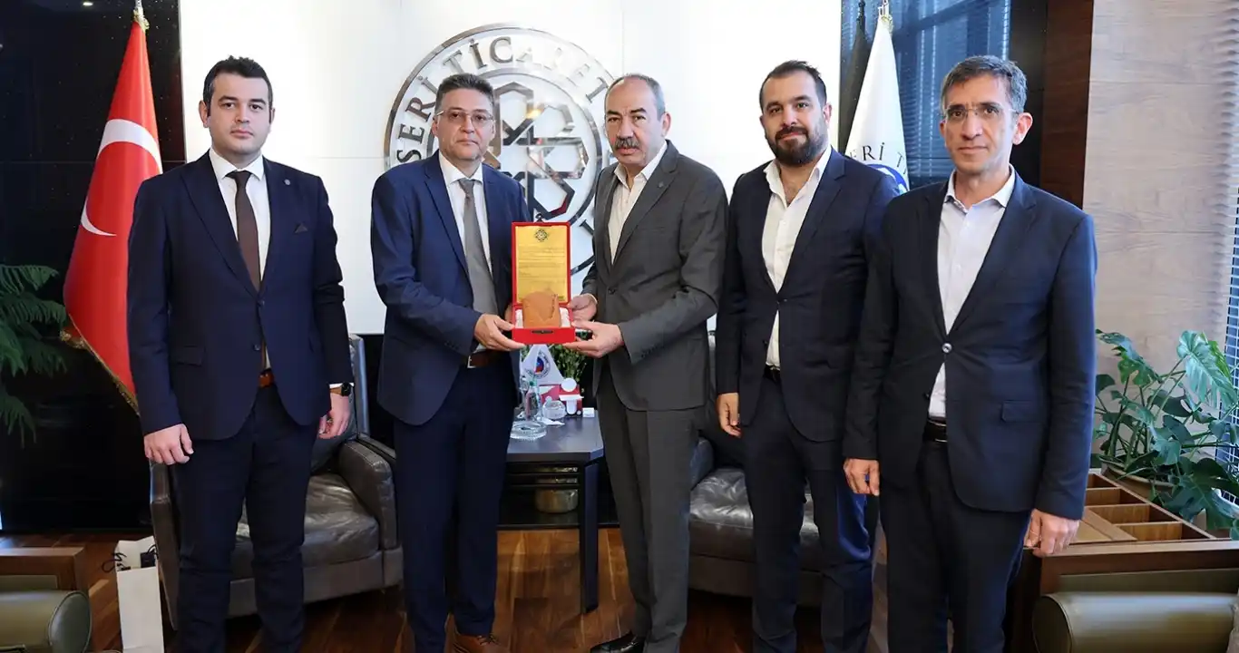 AB Türkiye Delegasyonu İletişim Bölüm Başkanı Müsteşar Ramunas Janusauskas'ı Kayseri Ticaret Odası Başkanı Ömer Gülsoy’u makamında ziyaret etti.